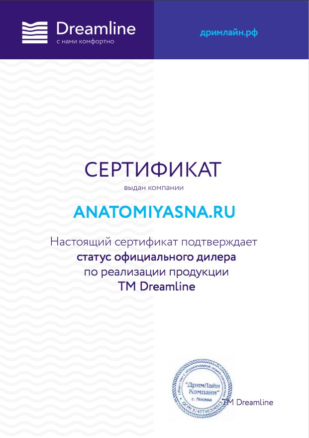 «Анатомия сна» – европейское качество, доступное сегодня каждому! На протяжении 9 лет мы обслуживаем покупателей по всей России. За этот период мы смогли завоевать доверие на отечественном рынке. Многолетний опыт, слаженная работа команды компании, безупречная репутация, множество положительных отзывов от новых и постоянных клиентов, позволяют нам сегодня предложить покупателям наилучшие условия обслуживания, включая разумные цены и развитую логистику. Также мы открыты для сотрудничества с оптовыми заказчиками и производителями.